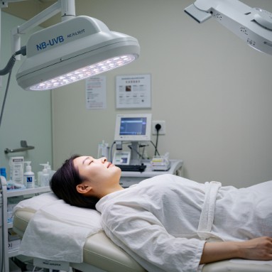 - 광선치료는 중등도 이상의 백반증에 적용되는 방법으로, 특히 엑시머 레이저나 협대역 자외선 B(NB-UVB) 치료가 널리 사용됩니다. 이 치료는 멜라닌 세포의 재생을 유도하고 면역 기능을 조절하여 색소 회복에 도움을 줍니다.