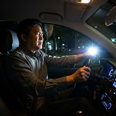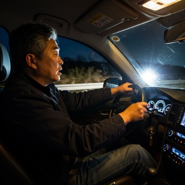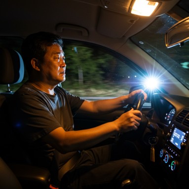 빛에 대한 민감성이 증가하여, 실내 조명이나 햇빛이 과하게 번져 보이거나 눈부심이 심해집니다. 특히 야간 운전 시 맞은편 차량의 헤드라이트가 눈에 띄게 불편하게 느껴지는 경우가 많습니다.