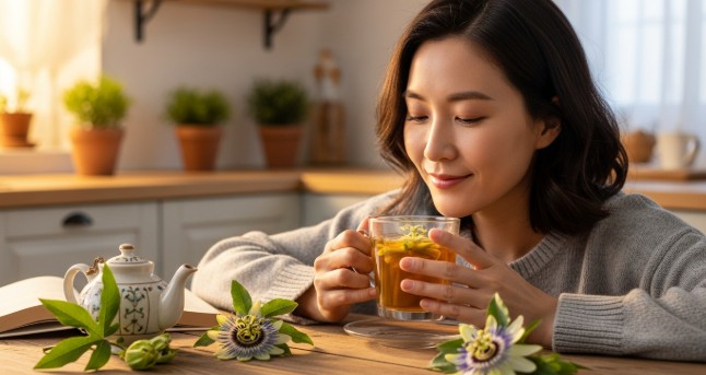 - 패션플라워: 이 허브는 뇌의 GABA 수용체에 작용하여 신경을 안정시키고 자연스러운 멜라토닌 분비를 촉진합니다.